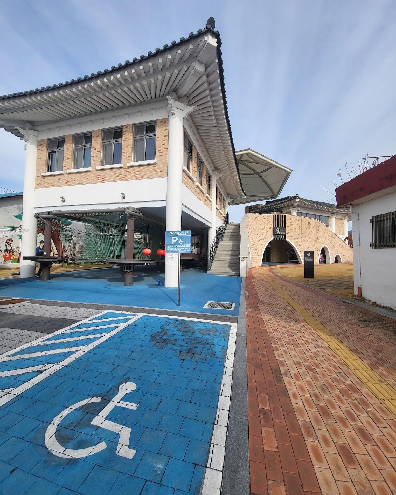 건물 아래에는 아이들이 마음 껏 놀수 있는 챌린지??놀이시설?? 이 있었다.. 트렘폴린도 있고,,